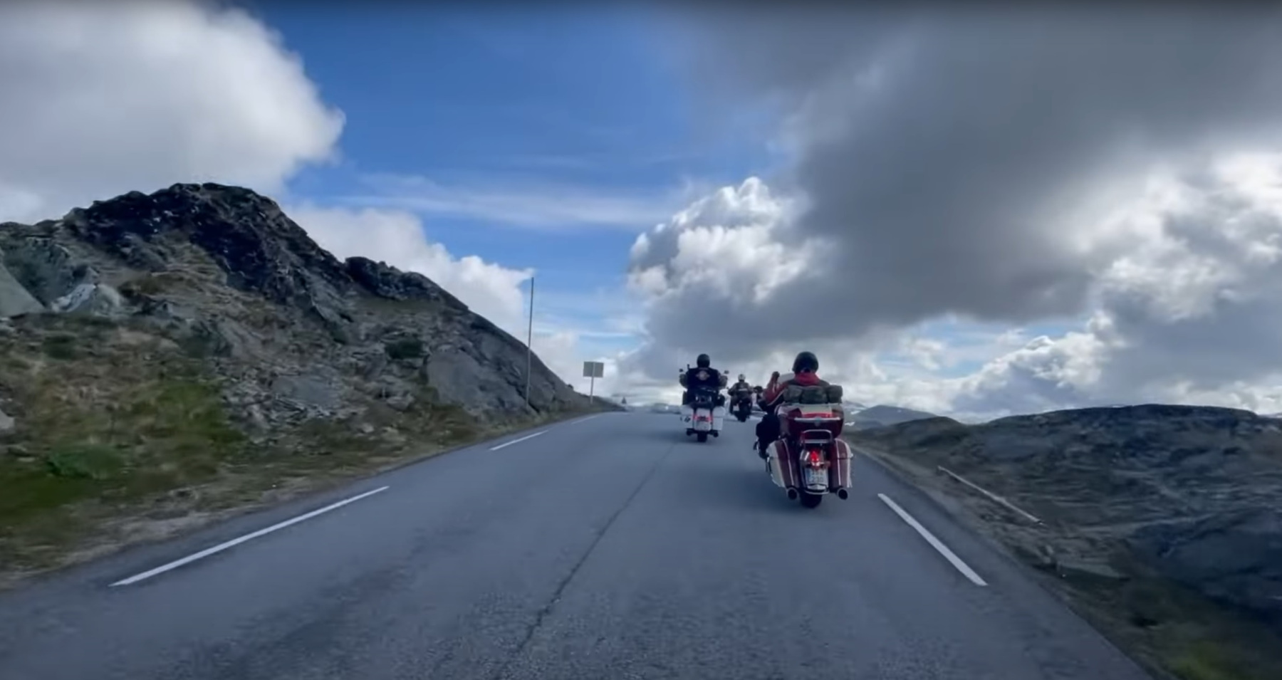 Výlet začíná v pětihvězdičkovém ubytování s indianským motorkovým srdcem. Hned po ránu vyrážejí po úžasné horské silnici k nejvyšší hoře Norska. Výhledy jsou až kýčovitě krásné a počasí přispívá k parádnímu zážitku — slunce svítí, i když předchozí dny lilo jako z konve.