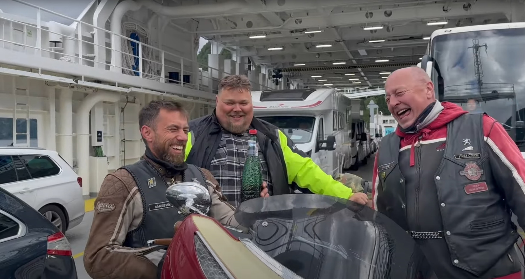 Po celodenní jízdě a několika pokusech o nalezení místa na spaní parta nakonec „squatuje“ v nádherném přístřešku pro jachtaře. I přes menší komplikace s místním obyvatelem vše dobře dopadne, protože motorky nakonec přece jen otevírají srdce. A že prý Češi nejsou Němci, to tady taky hrálo roli.
