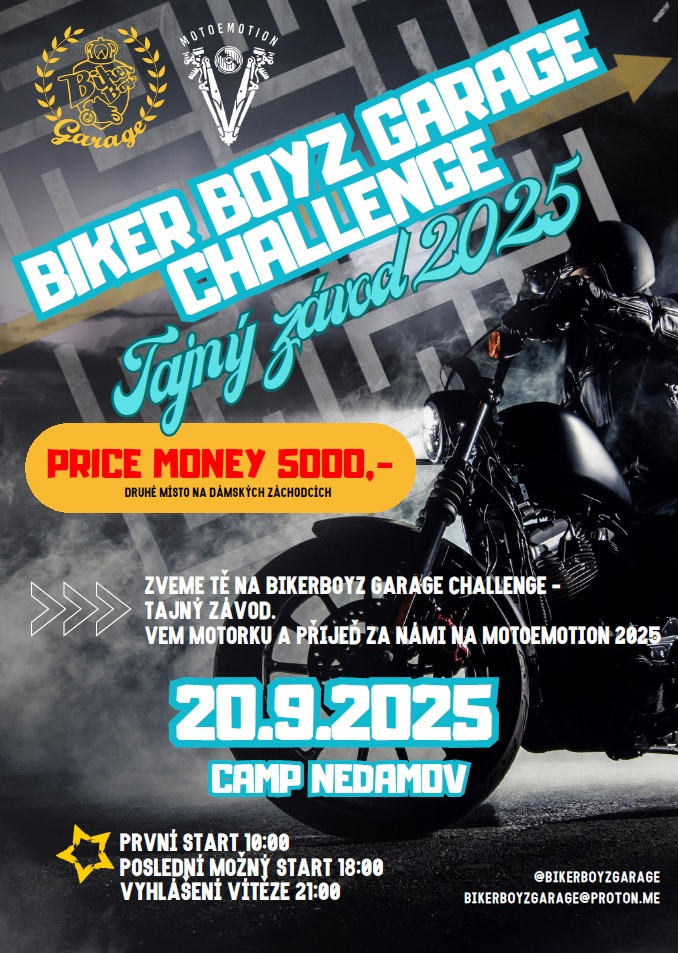 TAJNÝ závod powered by Biker Boyz Garage – vítěz bere 5 000 Kč (startovné 200 Kč).