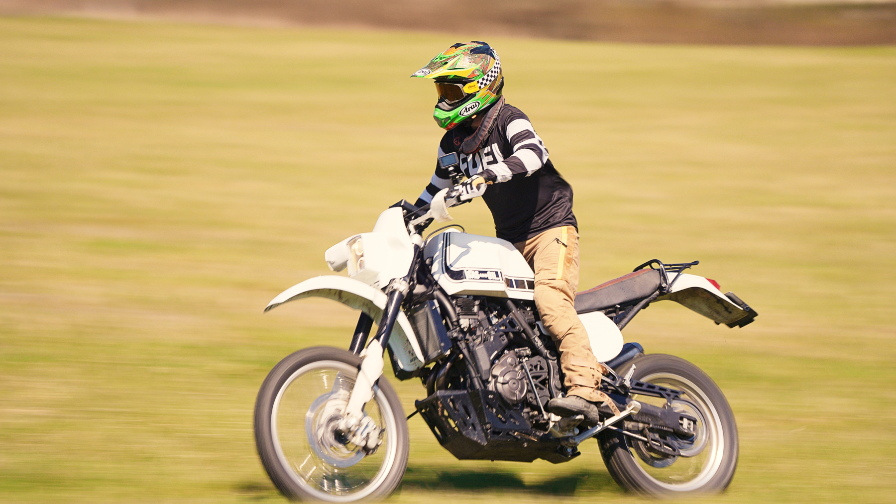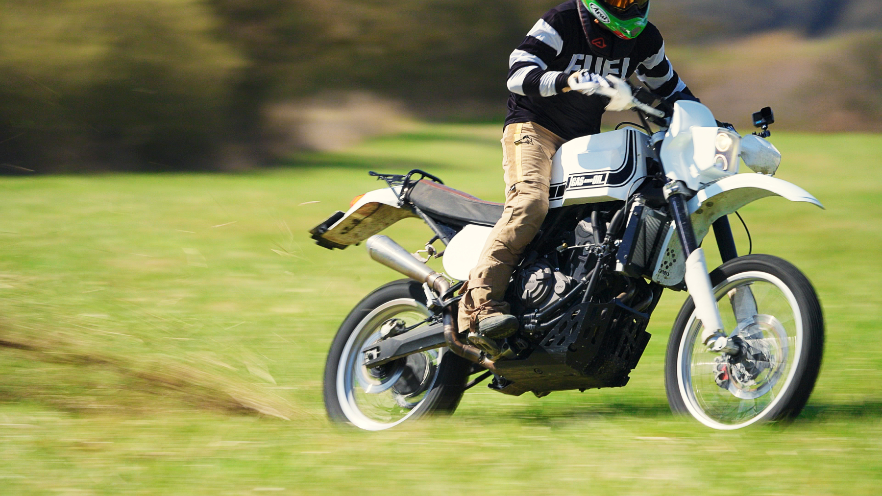 Motorka si prošla těžkou nehodou při cestě přes Írán, kde byla doslova na odpis. Co zbylo, návrat zpět domů – a právě v dílně Gas&Oil dostala druhou šanci. Výsledkem je retro závodní bestie, která vzdává hold rallye motorkám 80. let. Žádné chromy a pozlátko – jen funkční, poctivý stroj s drsným postojem a příběhem, který ji činí výjimečnou.
